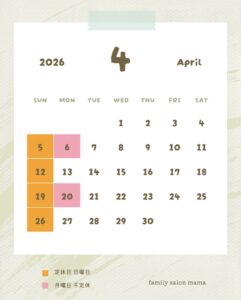 ★2026年4月のお休み★