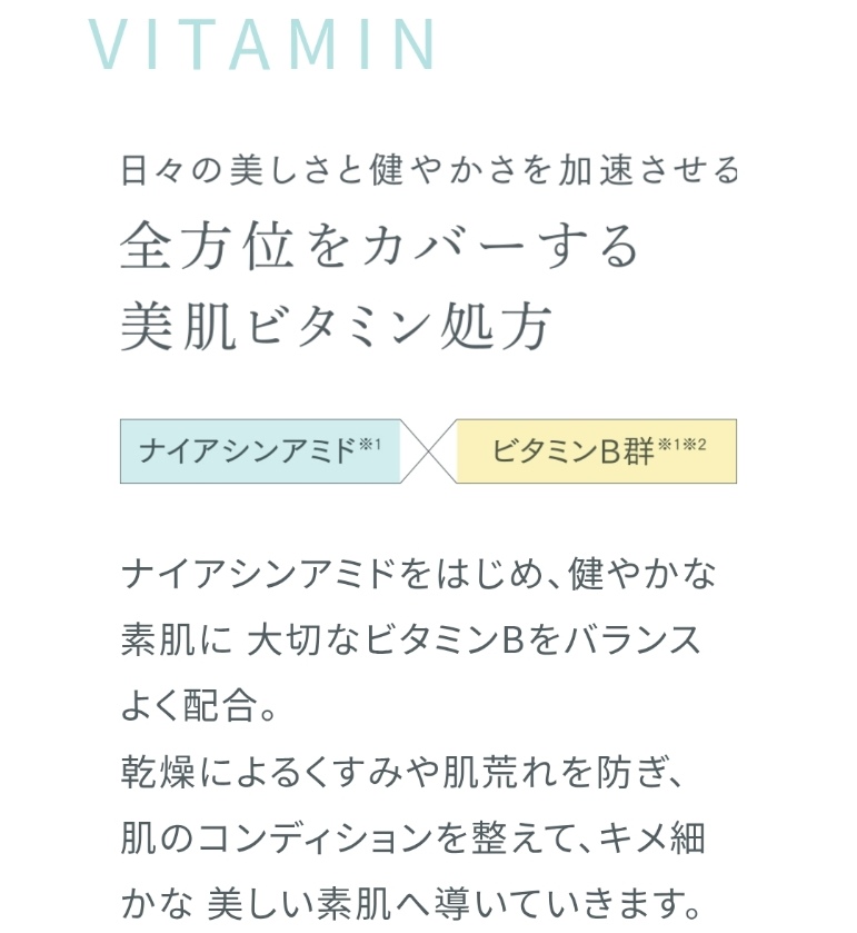​ナイアシンアミド(ビタミンB): 乾燥によるくすみや肌荒れを防ぎ、キメを整えることで、**まだ見ぬ“キレイ”**へと導きます。